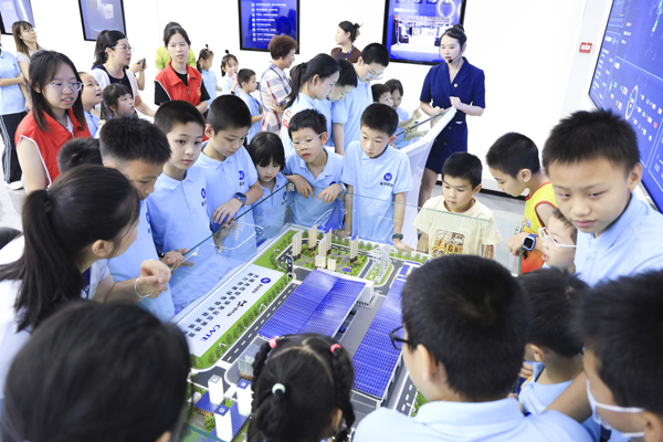 宣传片观看结束后,孩子们最期待的展厅探秘环节正式开始。在讲解员和志愿者的带领下,孩子们步入了展厅,沉浸式感受科技的魅力。讲解员用生动易懂的语言,结合香港大学志愿者们的实物操作演示,将复杂的锂电池检测技术、新能源汽车充电技术讲述得妙趣横生、直白易懂。孩子们兴致勃勃,认真聆听讲解。
